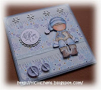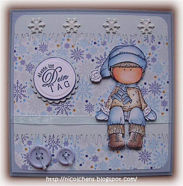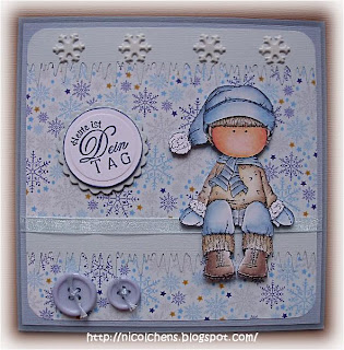 I've made a birthday card in wintry light blue. I have taken the sweet boy from 20th hÄnglar Kit The paper comes from the DCWV Paper Stack * The Christmas Combo *. I've decorated with ribbon, buttons and brads, snowflake.