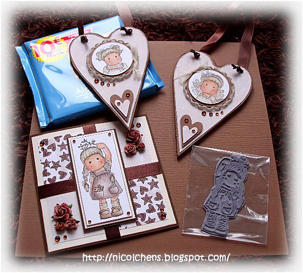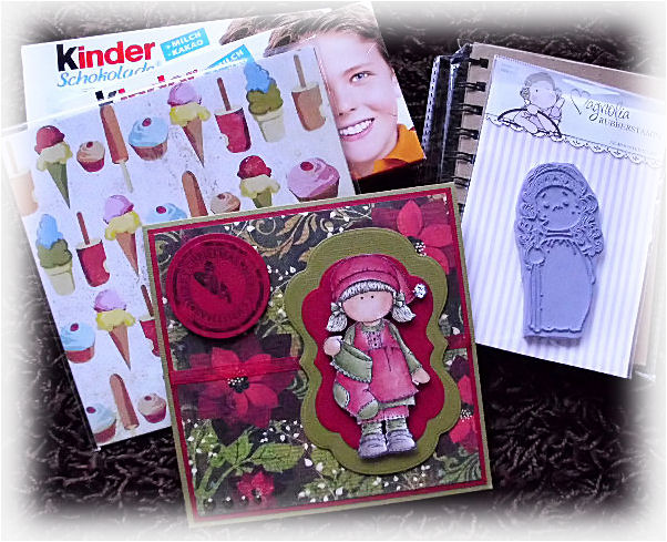 First, I packed her into the Liebelingsschoki Päckel. Then I had geschmökert stamp in your wish list and saw that she the sweet Tilda * under * mistletoe has not had and thought that would be a nice gift.