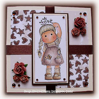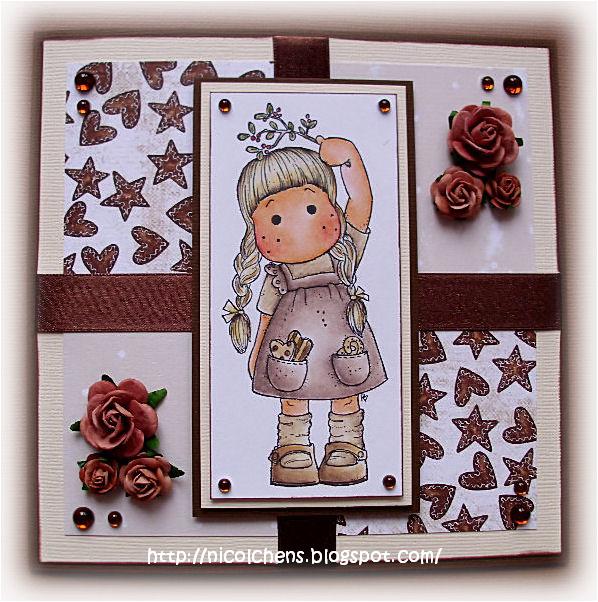 also had Nicole stated in your favorite colors, earth tones and so I brown the Weihnachstkarte in the colors / cream held and as a subject I had chosen appropriately sweet * Tilda under mistletoe *