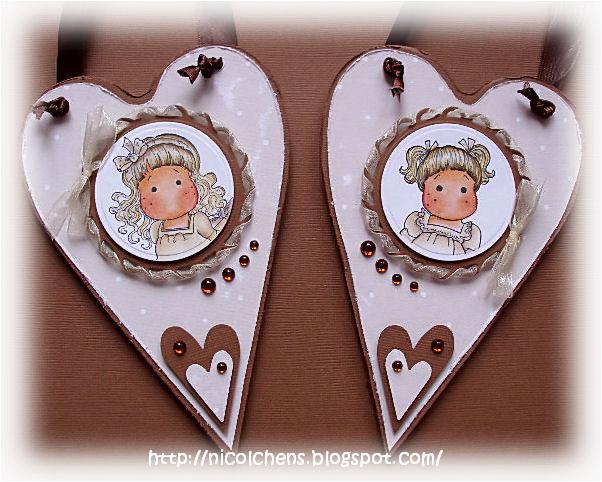 And last, I have two tension in heart-tunic the colors brown / cream bebastelt and decorated with motifs Tilda