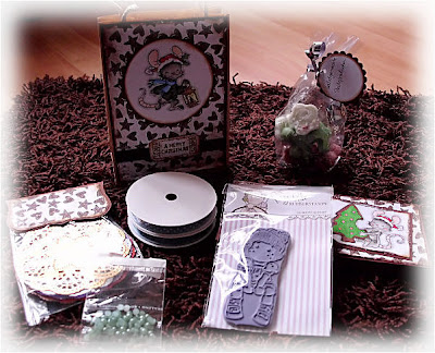 From dear Swantje , my first Icing in the stamp Café, I got this beautiful Päckel. Besides super nice ribbon and Lace Doilies, delicious chocolate and homemade bath balls or a totally sweet Magnolia stamp was included.