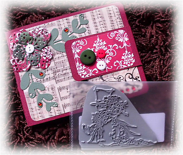 From my 2nd Icing from stamp cafe, the lovely Ilona , I get this magical card in beautiful colors and a sweet punch LOTV