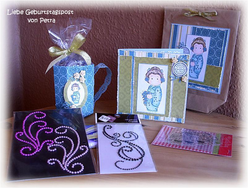 ... has this super nice set of surprises me the love Petra / pecreativ , it consists of a cup of delicious tea, my Lieblingsschoki, a sweet punch, Klebeswirls beautiful, a lovely card and gift packaging ...
