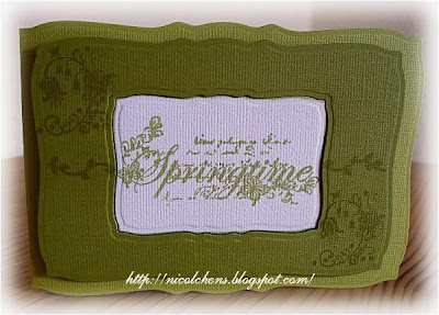 For the second card I have cardstock taken in two different shades of green and white. I punched the card * * Curved Rectangles of Spellbinders. The motifs are from the set * Spring Time and rabbits * Viva Decor . The motives I have with Chalks * Moss * and * Dark Olive Pastel *.