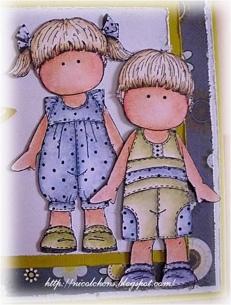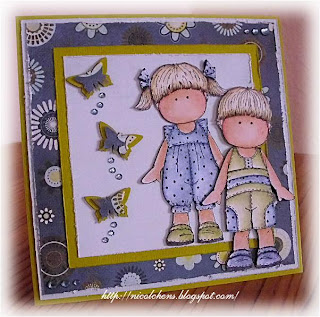 I've chosen the two sweet hÄnglar Kit from 25th I've colored the images in the colors of the papers "Marjolaine" by BasicGrey. The edges of the papers I've treated with the paperdistresser. I've decorated with stamped butterflies and rhinestones.